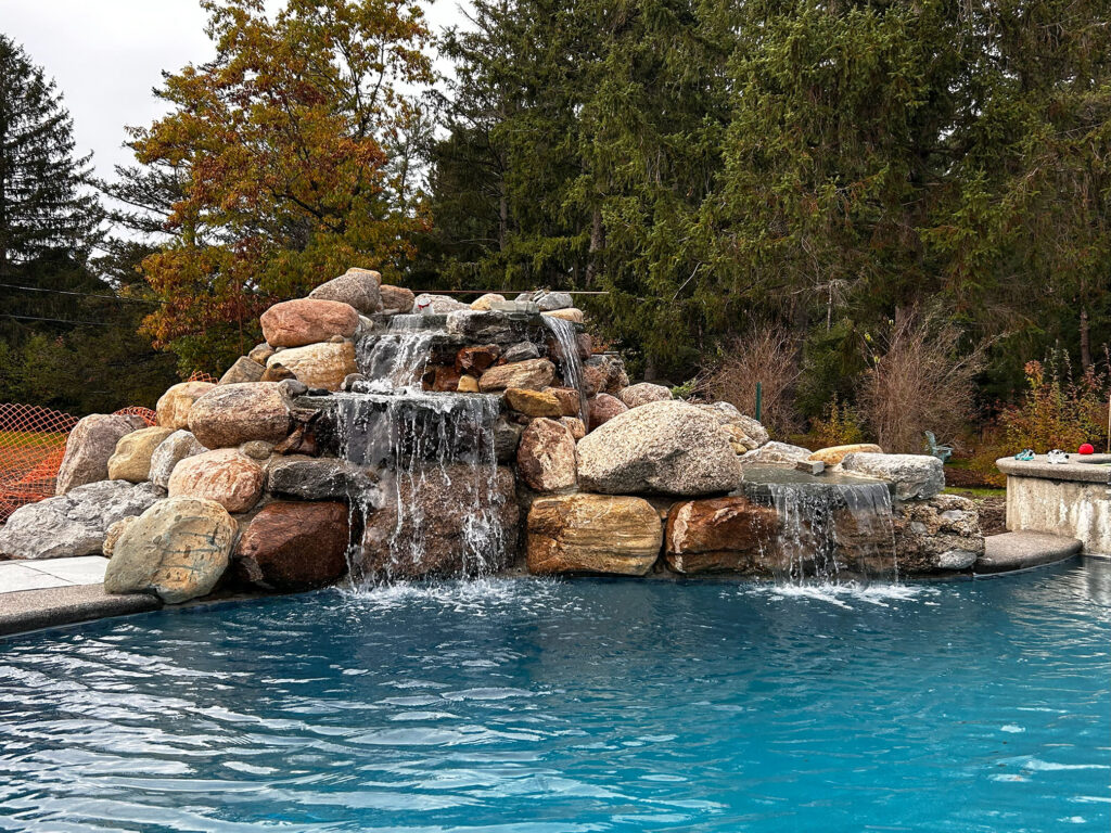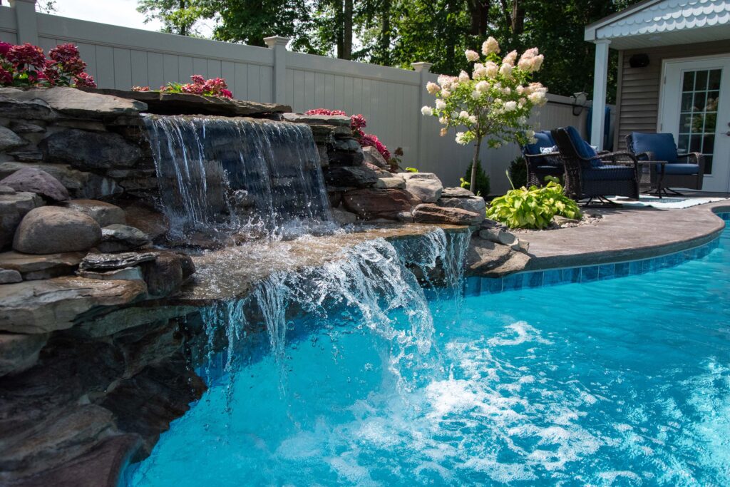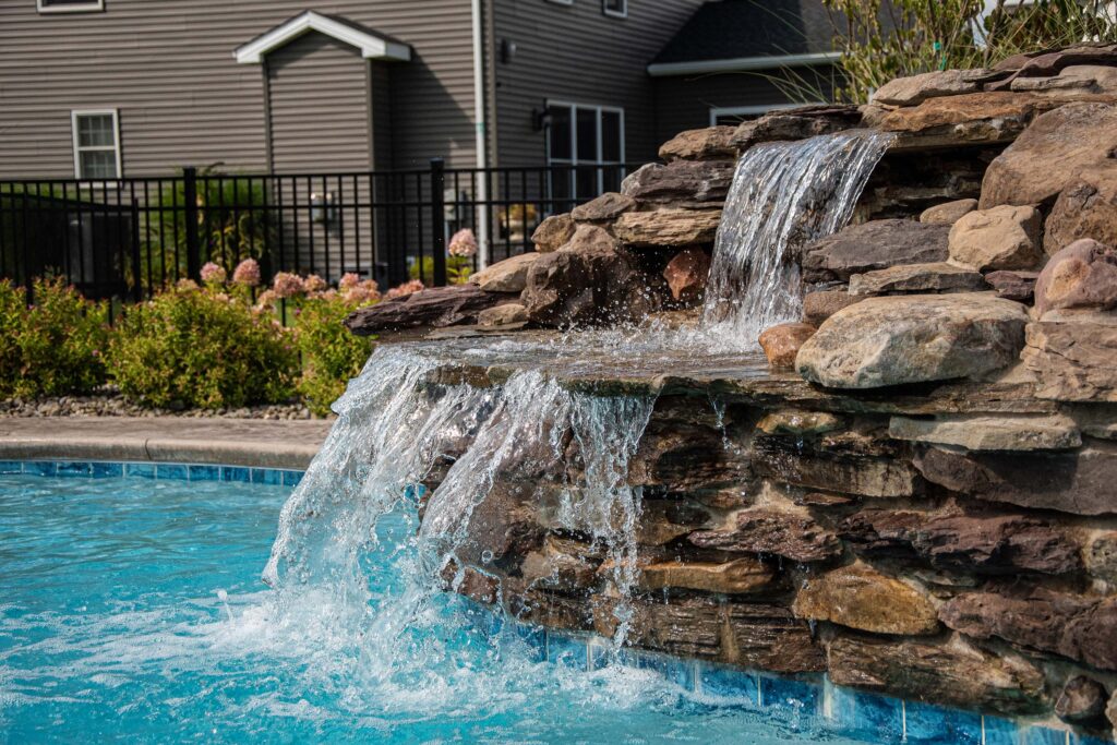 While a custom waterfall is a premium pool feature that can significantly increase initial construction or renovation costs, the long-term value it adds to your outdoor living space is often unmatched. Beyond the striking visual “wow factor,” a waterfall serves as a natural sound machine, utilizing a steady rhythmic flow to mask neighborhood noise and create a private, tranquil sanctuary. Additionally, the constant movement of the water helps improve circulation and aeration, which can assist in keeping the pool water cooler and clearer during the peak of summer. When you factor in the therapeutic benefits of a backyard retreat and the boost to your property’s resale appeal, this high-end feature quickly transitions from a luxury splurge to a worthwhile upgrade for any homeowner. And, if the price is too high or the natural look isn’t the way you want to go, there are plenty of other options to inject the white noise effect of falling water into your project.