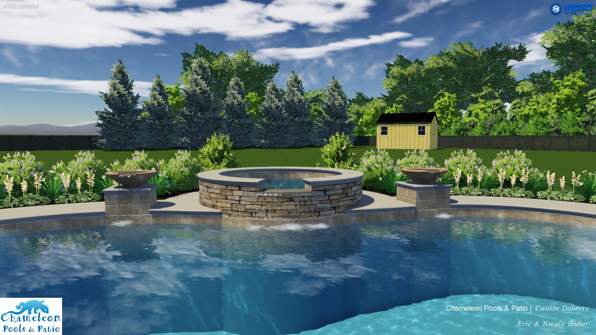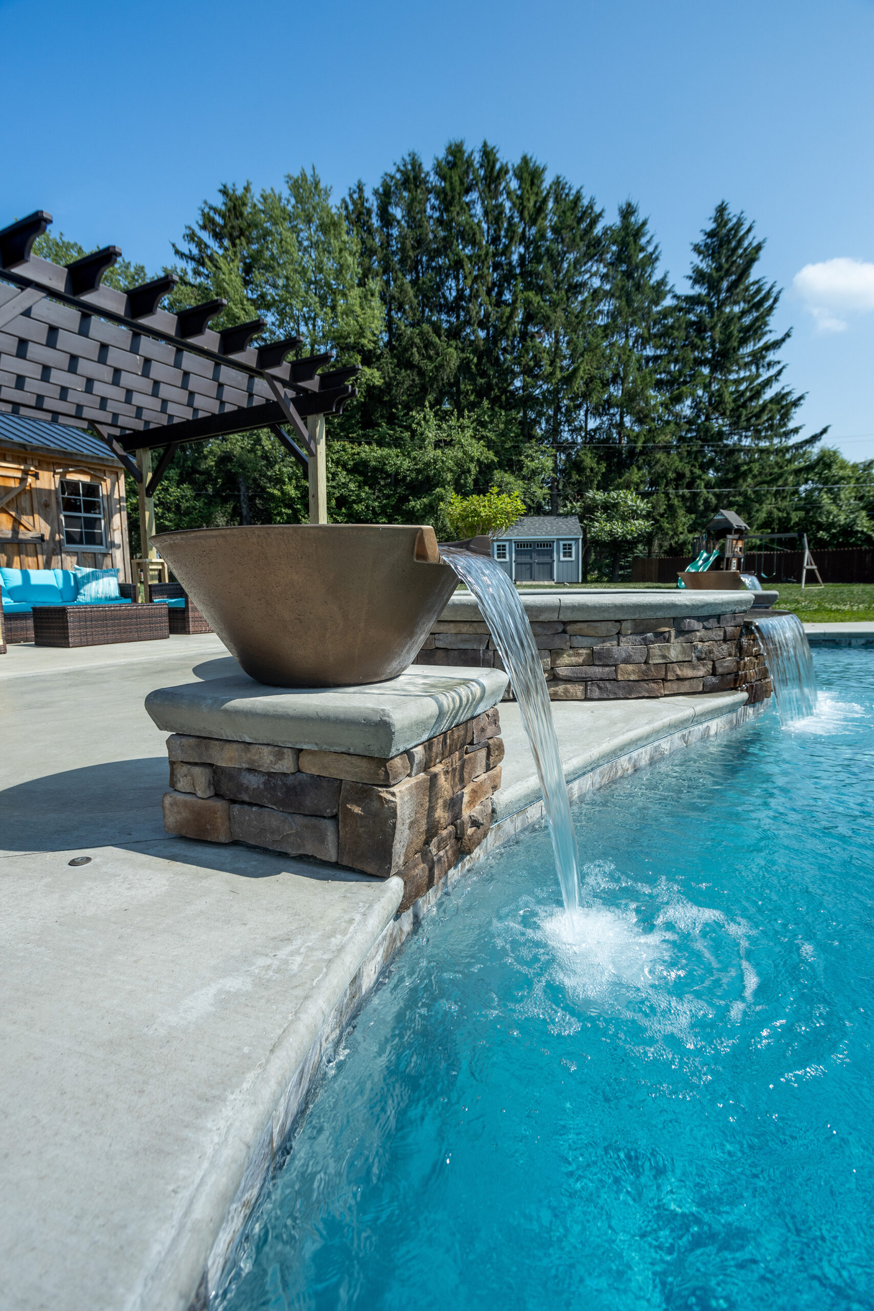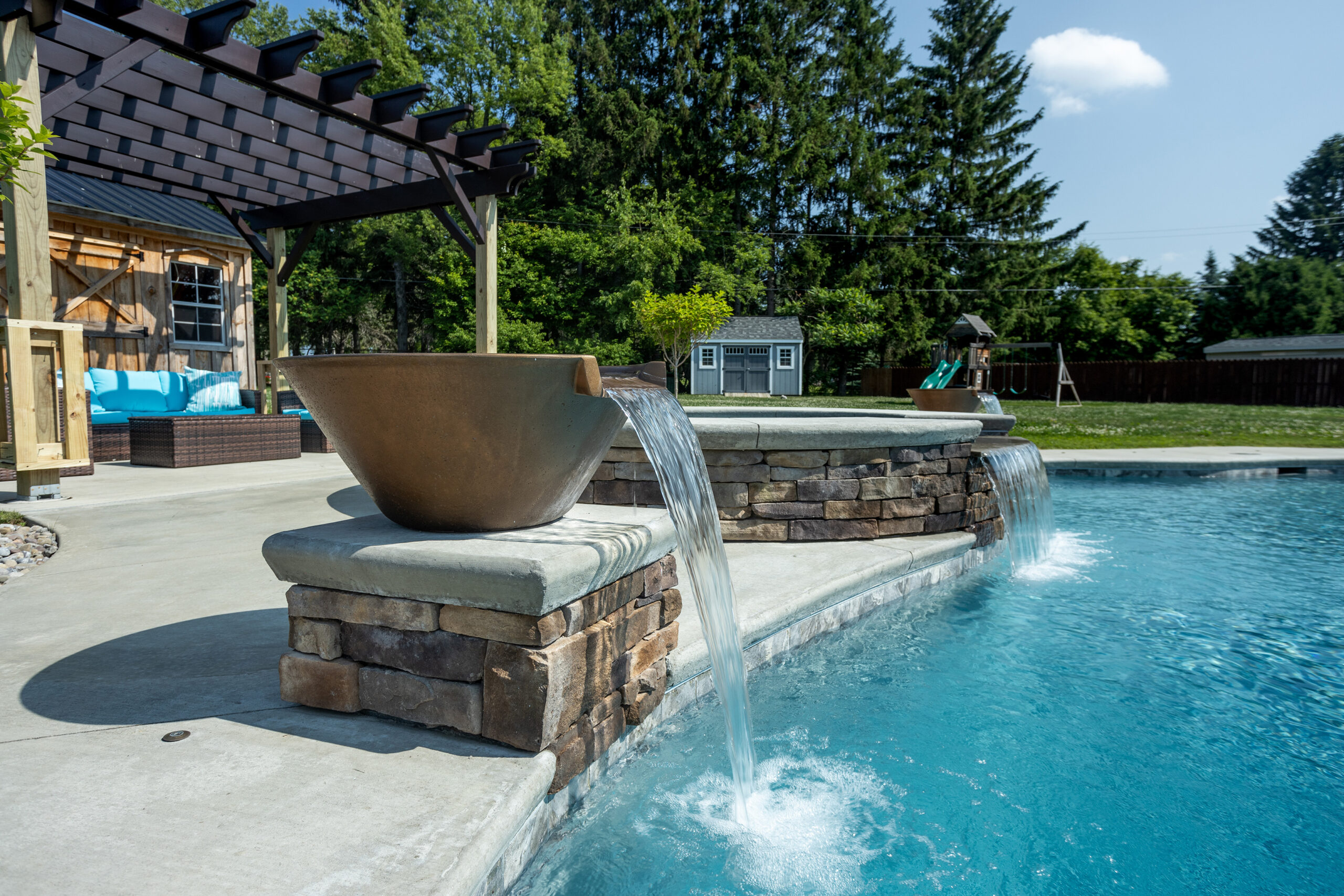 - Two Water Bowls and Spa Spillover, creating three simultaneous waterfalls