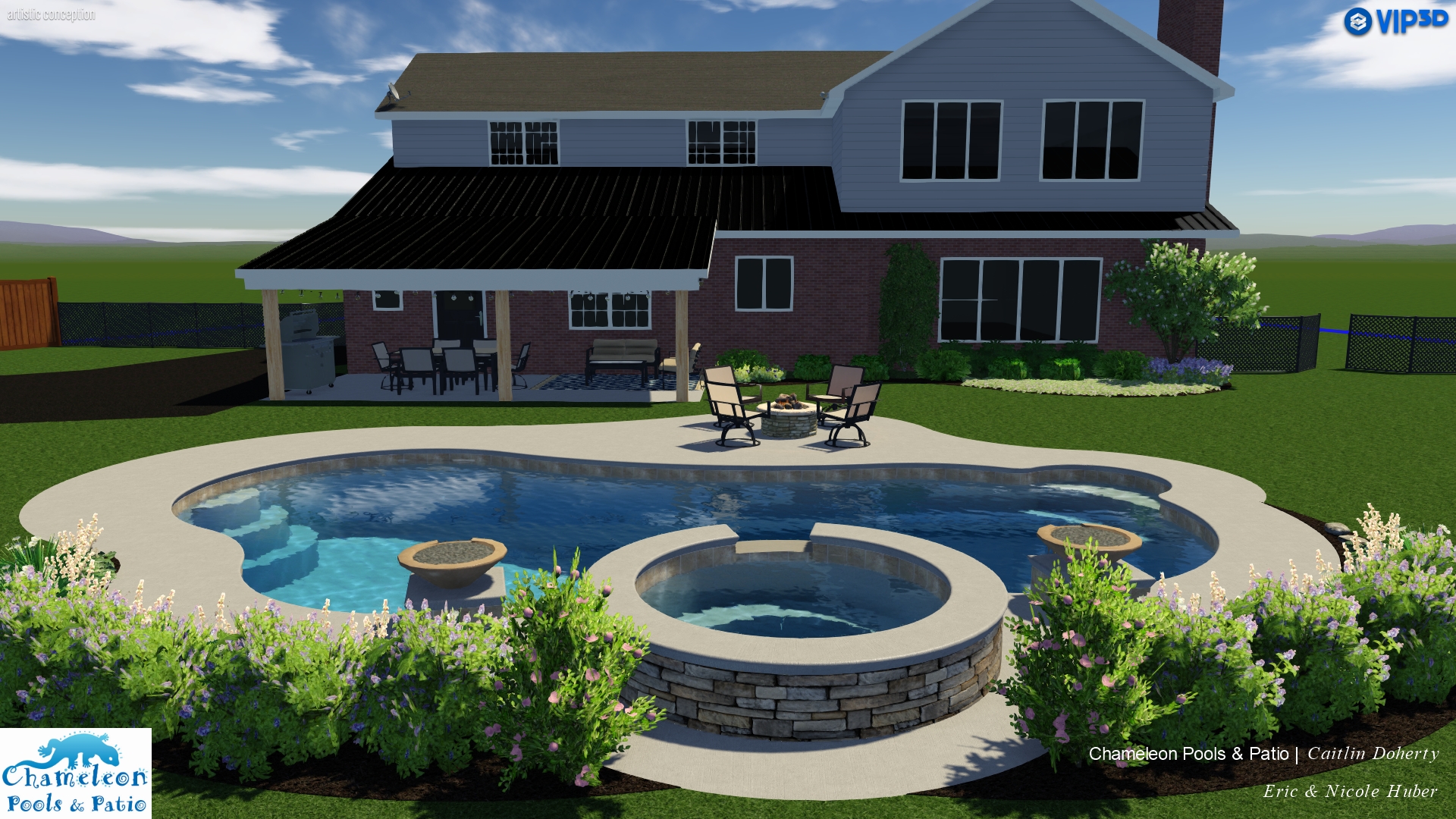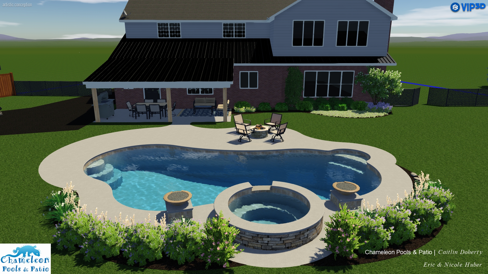 - Pergola-Covered Seating Area