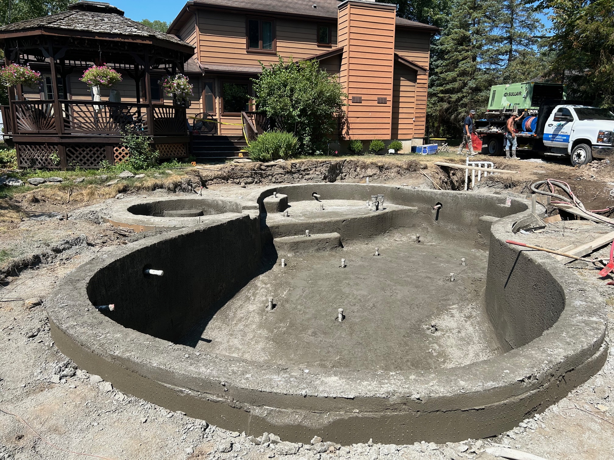 Every project is different depending on size, complexity, weather, and permitting. On average, our gunite pool builds take about 10 to 14 weeks from the time we break ground. We’ll provide you with a projected timeline during the design and contract phase.